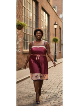 Indulge in luxurious comfort and stunning style with this Cacique chemise. Crafted from a silky burgundy satin with a contrasting peach trim, this piece offers a perfect blend of elegance and allure.