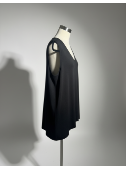 Elevate your wardrobe with this quintessential black Venezia sleeveless top. A testament to classic style and comfort, this piece offers versatile sophistication for any occasion.