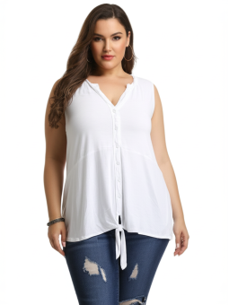 Embrace timeless style with this versatile white sleeveless button-down blouse, featuring a chic tie-front detail that elevates any ensemble. Crafted for comfort and designed for modern appeal, this blouse is your go-to for a range of occasions, offering a relaxed yet refined aesthetic.